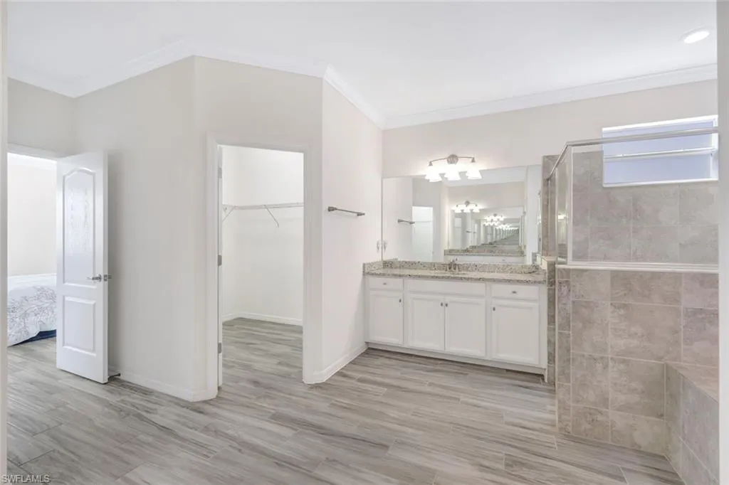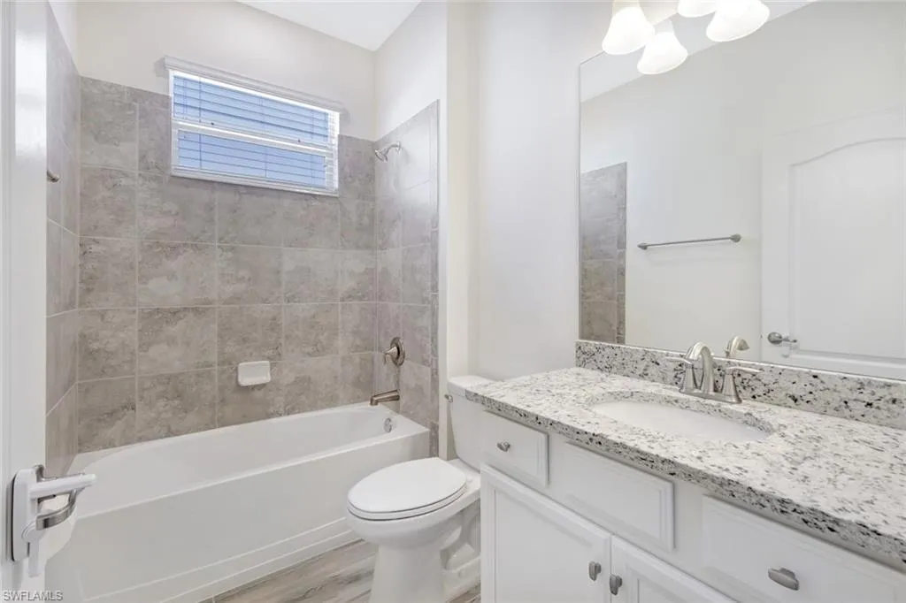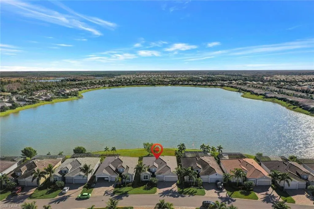 Welcome to Bonita Landing, a gated enclave of 219 residences that circle a massive 40+ acre lake. This immaculately kept lake front Summerville II floorplan offers 3-bedrooms + Den, 3-full bathrooms, and a 3-car garage. Notable upgrades include Dishwasher (2024), Microwave (2025) Water Heater (2025). Upon entering the grand foyer, you transition to a large kitchen and living/dining area which features spanning lake views. The split floor plan provides privacy, ample space, and comfortable stays for family and friends. The large master suite will not disappoint. Master bath offers dual vanities, walk-in shower, soaking tub, and 2-large walk-in closets. The oversized kitchen island and open floor plan provides the ability to entertain guests and accommodate family get togethers. This home boasts plank tile throughout, crown molding, light and bright colors, and plantation shutters. Transitioning through the large sliding glass doors brings you to a paver sitting area overlooking the large back yard and stunning lake views. The large back yard gives you the opportunity to build a pool oasis of your choice. Bonita Landing offers low HOA fees that cover cable, Internet/WiFi access, lawncare, landscape, and irrigation. Residents enjoy a fishing pier, picnic area, basketball court, tennis court, and play ground. This location gives you easy access to I-75, RSW Airport, Crew Flint Pen Strand Park/Trails, North Naples, and soon to be Midtown At Bonita.