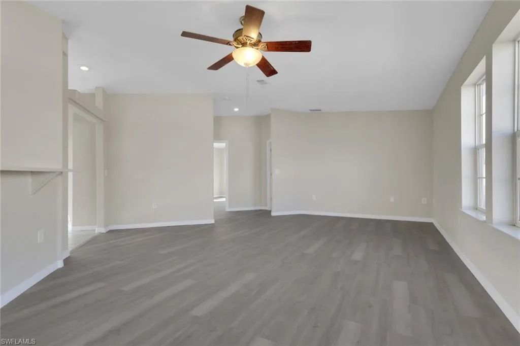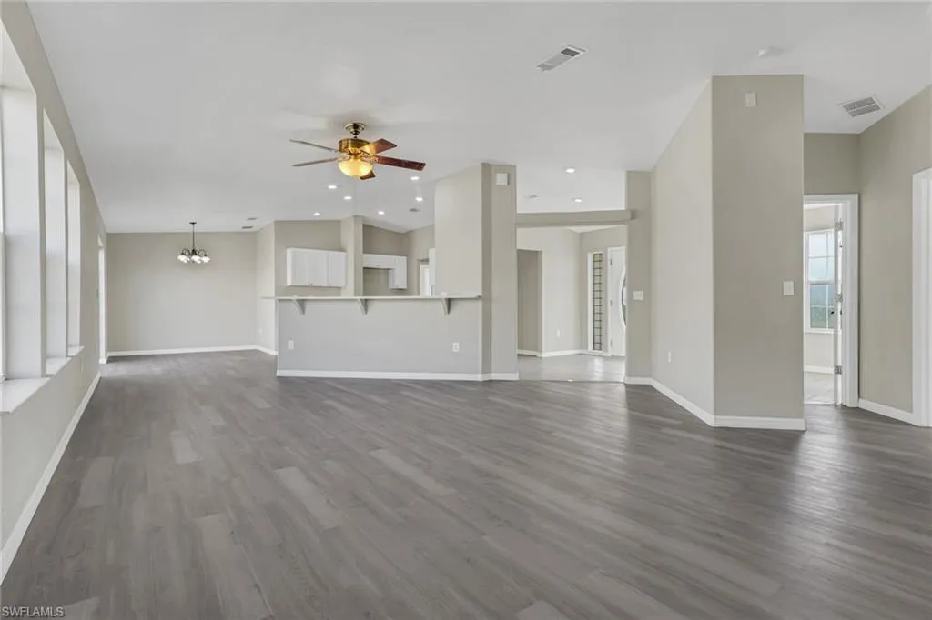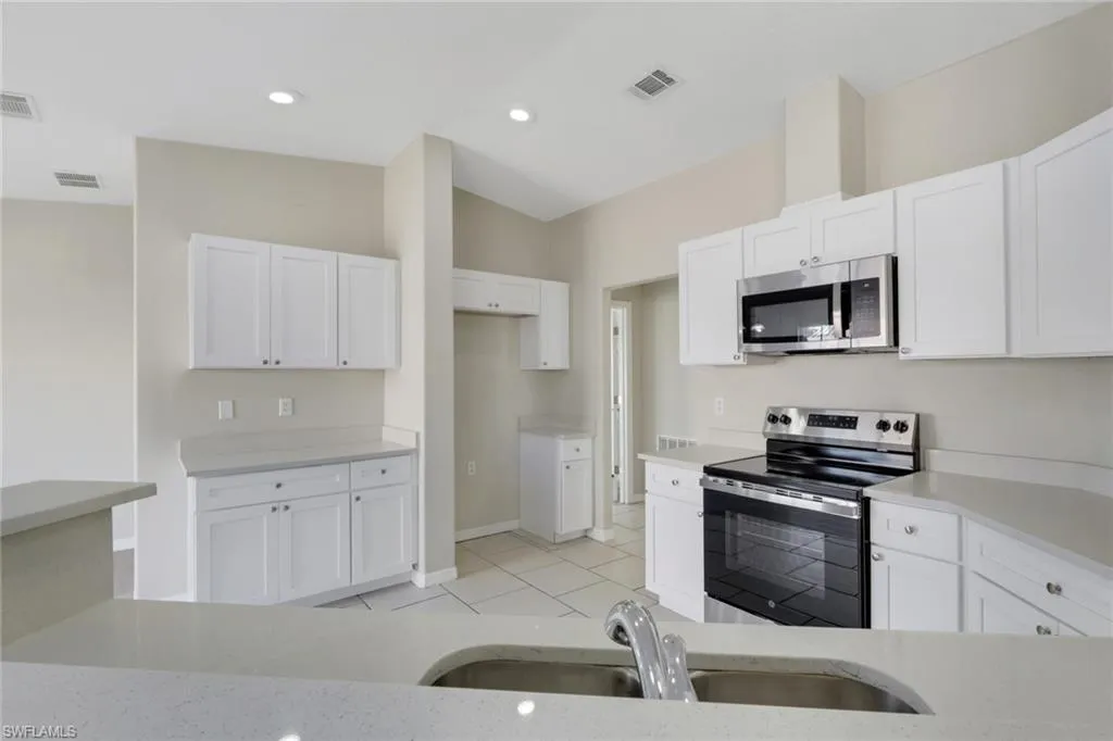 Inside, the split-bedroom floor plan provides privacy and comfort, while the open main living area flows seamlessly into the kitchen. The kitchen is equipped with a breakfast bar and beautiful quartz countertops, creating an inviting space for cooking and casual dining. The layout is designed for everyday living as well as easy entertaining. The location offers convenient access to parks, nature areas, and outdoor recreation, along with nearby walking and biking trails, green spaces, and waterfront areas. Local beaches, coastal preserves, a wide selection of restaurants, and community activities are all within easy reach, adding to the appeal of the surrounding area. With its corner lot, thoughtful updates, generous garage, and well-designed interior, this home presents an excellent opportunity to enjoy comfortable and convenient Port Charlotte living.