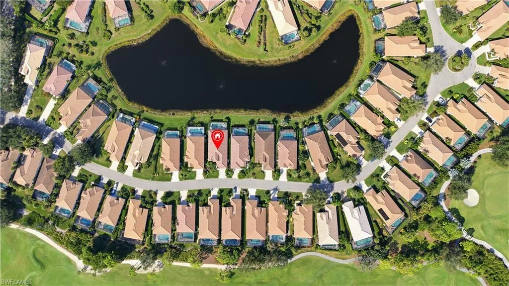 Lovely lakefront pool home in the highly desirable community of Capri at Pelican Landing. This light and bright 3-bedroom, 2 and a 1/2 bath residence with a den features numerous updates, including a beautifully remodeled kitchen and primary bath with stunning quartz countertops. The spacious great room offers volume ceilings and serene views, while the newer 2023 roof adds peace of mind. Step outside to your private lanai and pool, the perfect place to unwind and enjoy breathtaking sunsets over the lake.