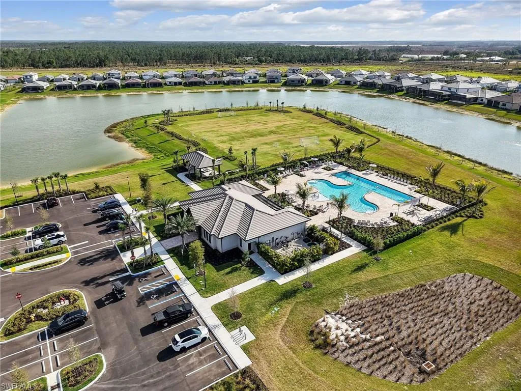 **REDUCED** RARE CENTER-OF-THE-LAKE WATERFRONT HOME WITH BREATHTAKING SUNSET VIEWS IN VERDANA VILLAGE. Located in the completed West Village with no nearby construction, this extensively upgraded Pulte Mystique offers peaceful surroundings and stunning big-water western views with room for a pool. The thoughtfully designed layout features 3 bedrooms plus a den, 2 baths, and an extended great room that creates a spacious, open feel perfect for entertaining. The den with French doors provides flexible space for a home office, media room, or guest area. Luxury upgrades include crown molding, gray soft-close dovetail cabinetry, 8-foot coastal style doors, tray ceilings, ceiling height shower tile, a finished laundry room with cabinets, sink and upgraded washer & dryer, outdoor kitchen pre-plumbing, and a 4-foot extended garage with epoxy flooring. Additional enhancements such as premium window treatments, upgraded lighting & dimmer switches, whole-home water conditioning, enhanced A/C with UV air purification, Storm Smart hurricane shades on the lanai, hard-wired security system, and a screened front entry, all create comfort and peace of mind. Enjoy resort living in Verdana Village with indoor and outdoor pickleball and tennis, multiple pools, fitness centers, bocce, covered playground, multiple on-site dining options, and a vibrant social calendar. Look around – This is a rare opportunity to own an upgraded home on one of the community’s most desirable waterfront lots! One or more photo(s) has been virtually staged, AI generated or rendered.