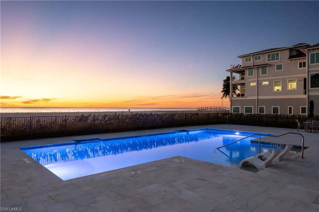 Stunning Beachfront home located in Collier County’s premier “Barefoot Beach” community! This remarkable residence is situated on a double homesite offering unparalleled views of the pristine sands and turquoise waters of the Gulf, with private beach access just steps from your doorstep. Spanning an impressive 9,399 sq ft under air across five levels of luxurious living space, this exceptional property features a large elevator with dual entries servicing every floor, 5 bedrooms + den, 5 full baths, 2 half baths, garage space for 5 vehicles, versatile flex space, and two new HVAC systems. Built like a fortress with the finest building materials, this home includes concrete block construction, metal roof, hurricane impact windows and doors, electric hurricane shutters, and a new 48KW Generac generator. The bedroom level offers exceptional comfort and privacy, featuring most of the home’s bedrooms including the luxurious primary suite. The primary retreat serves as its own private sanctuary, complete with direct access to a private balcony showcasing spectacular Gulf sunsets and a spa-like bath featuring dual vanities, a separate jetted tub, and a spacious shower enclosure with rainfall showerhead. The main living level is designed for both elegant living and effortless entertaining, featuring a gourmet chef’s kitchen with beautiful tray ceilings, crisp white cabinetry, dual sinks, high-end appliances including a gas range, a walk-in refrigerator with wine storage, and an oversized island with ample seating. The adjacent dining and family rooms open seamlessly to the open-air lanai, where rich cypress wood ceilings, a fully equipped summer kitchen and fireplace create the perfect setting to relax while enjoying sweeping Gulf views. At the top floor of the residence, you’ll find the ultimate recreation and entertaining space, complete with a kitchenette, theatre room, office, and expansive open-air balcony offering even more breathtaking Gulf vistas—an ideal setting for hosting guests or enjoying peaceful evenings overlooking the water. The Beach Gardens community features lush tropical landscaping and a beautiful resort-style pool. Optional membership to the exclusive Club at Barefoot Beach offers access to tennis, two restaurants, and beachside food and beverage service. Ideally located near fine dining, RSW Airport, Mercato, Waterside Shops, and Naples’ renowned Fifth Avenue South, this extraordinary property represents the pinnacle of Barefoot Beach living.