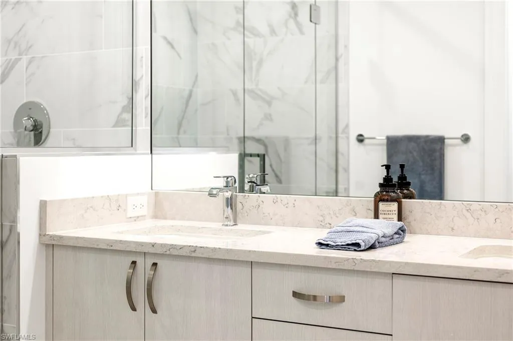 Experience the pinnacle of downtown Naples living at Eleven Eleven Central, located just 3/4 of a mile from the pristine beaches of the Gulf of Mexico and a short 0.5-mile stroll to the world-renowned Fifth Avenue South. This 2282 square foot condo offers 2 bedrooms, a den, 2.5 bathrooms and of beautifully designed living space. The residence is located in the highly desirable third Buiding of Eleven Eleven Central. Building three units come with 2 covered parking spots, gas stoves and gas grills on their oversized lanai, making it a luxurious retreat, indoors and out, in the heart of the city. Eleven Eleven Central is a vibrant community filled with an incredible array of amenities. Residents enjoy a resort-style pool featuring two lap lanes and two hot tubs, a bocce court, a putting green, a life-sized chess set,a hammock lawn and a community park complete with a fenced-in dog park. A complimentary shuttle bus adds convenience by transporting you to nearby destinations. For recreation and relaxation, the community also offers a state-of-the-art fitness center, a game room, a social room, and a private movie theater. Overflow guests are accommodated with six rentable guest suites, while on-site dining options include the popular Bad Ass Coffee and Mr. 01 Pizza. Conveniently located near Fifth Avenue South, with its fine dining, boutique shopping, and vibrant nightlife, and only minutes from the Gulf’s breathtaking beaches, this property is ideal for anyone seeking luxury, convenience, and the best of Naples living.
