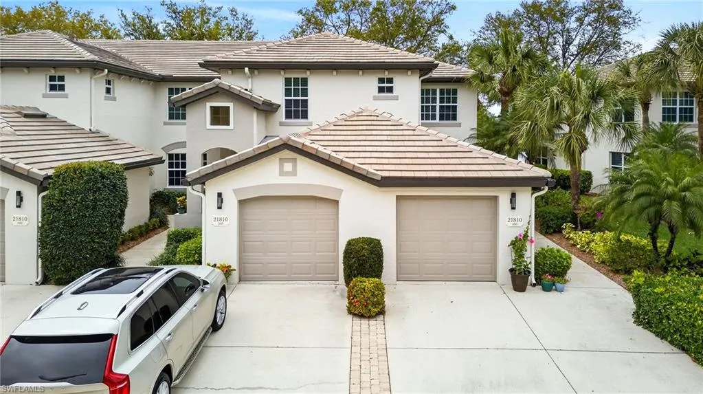 Tastefully updated first floor coach home is now available in the Southern Hills neighborhood of Pelican Sound, southwest Florida’s premier bundled golf community. Enjoy peaceful lake and golf course views from the enclosed lanai in any season. This bright and airy end unit’s kitchen offers granite counters, new stainless steel refrigerator and dishwasher, a new microwave, and a charming breakfast room with beautiful views. Custom molding enhances the breakfast bar, as well as the cozy den with a pull out couch for extra sleeping space. The private primary suite features a walk in closet, and a full bath with dual sinks and a walk in shower. The separate guest area offers a guest bedroom and bath with granite counters and a glass shower door. The laundry room has custom cabinetry, ideal for extra storage. With new a/c in 2025, new roof in 2024, new water heater in 2023, and new impact windows and sliders installed in 2025, the new owner will enjoy peace of mind as well as an incredible resort style lifestyle! If you are looking for an active lifestyle look no further: 27 holes of Championship golf, 14 pickleball, 8 tennis and 6 bocce courts. State of the art fitness center that is professionally staffed. Pelican Sound is nestled up to the Estero River with access to the Gulf. The community offers dry boat storage, kayaks, canoes and paddle boarding, along with a shuttle boat to Lovers Key State Beach Park. Minutes from RSW International airport and surrounded by fabulous shopping and restaurants.