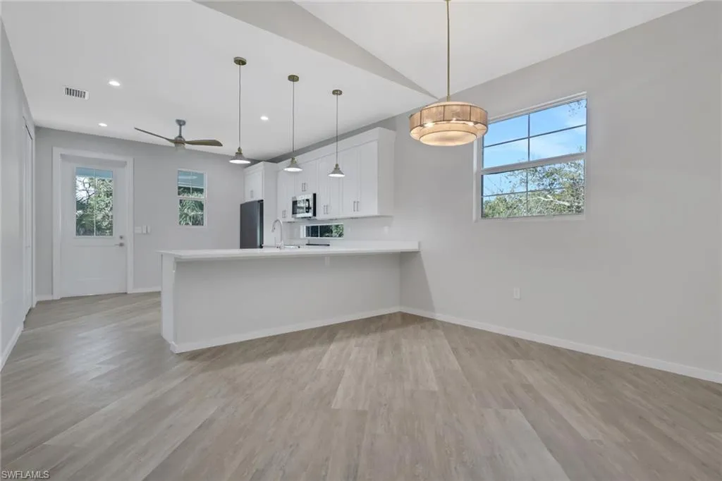 Identical to Unit 101 and now available to purchase separately or together, this flexible coastal compound is designed for the way people truly live in Southwest Florida. Just 2 miles from the beach and nearby shopping, this brand-new construction elevated residence offers an incredibly versatile layout, perfect for multi-generational living, a private snowbird retreat, or the opportunity to live in one residence while hosting guests in or renting out the other. Each 3 bedroom, 2 bathroom unit was thoughtfully built with smart coastal design. The entire structure is raised to 16 feet above sea level, significantly exceeding FEMA’s required 10-foot elevation. For perspective, Hurricane Ian’s water reached approximately 8 feet in this area, highlighting the peace of mind this elevation provides. Built to modern coastal standards, the home is engineered for 160 MPH wind resistance and features impact rated aluminum windows and fiberglass doors designed to resist warping, rot, and corrosion. The elevated living level also features concrete block walls, creating a durable and storm resistant structure rarely found in typical wood frame construction. The design emphasizes low maintenance, long lasting materials throughout, including concrete, stucco, pressure-treated wood, composite materials, aluminum, and fiberglass. Inside each residence, you’ll find bright and open living spaces highlighted by soaring vaulted ceilings in the main living areas and a minimum 9’4” ceiling height throughout. The kitchens feature quartz countertops and stainless-steel appliances, including a glass-top range with microwave. Each unit also includes stacked washer and dryer, Tankless Water Heaters, Moen plumbing fixtures, and Kohler toilets for quality and reliability. Bathrooms showcase custom tiled showers with frameless glass enclosures and 180-degree swing doors, finished with elegant satin nickel hardware. Throughout the home, luxury composite flooring offers a soft feel underfoot while being durable and easy to maintain. Outdoor living is equally impressive with front and rear porches finished in Azek composite decking, designed to last for decades without the maintenance of traditional wood. Below the living area, the expansive open garage offers space for up to 8 vehicles and significant storage plus a locking storage room, with the option to enclose the entire garage area or portions if desired. Whether you’re looking for a coastal family compound, an income-producing opportunity, or a unique snowbird retreat, this newly constructed property offers flexibility, durability, and a lifestyle centered around Southwest Florida’s beaches and sunshine! One or more photo(s) has been virtually staged, AI generated or rendered.