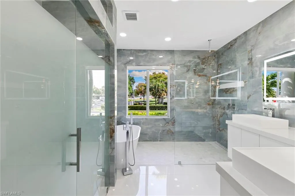 Exceptional investment opportunity in a phenomenal location near the Esplanade shops and Marco Island’s Beaches. This stunning fully remodeled residence sits on a prime corner lot with beautiful water views, offering approximately 2,488 sq. ft. of living area with 4 bedrooms, 3 full baths, and a 3-car garage. Completely renovated inside and out, the home features a new metal roof, impact-resistant doors and windows, new garage door, and a full electrical panel and system upgrade, along with two new A/C units and all-new ductwork and vents. The interior boasts a fully remodeled kitchen featuring quartz countertops and tall modern cabinetry, renovated bathrooms, new flooring throughout, all-new finishes, motorized curtains, and a spacious walk-in pantry. Designed for seamless indoor-outdoor living, enjoy a panoramic screened pool enclosure, fully remodeled pool with new spa, brand-new pool deck, and an outdoor summer kitchen with grill, sink, and mini fridge, complemented by a saltwater pool system. Additional upgrades include new balcony and stair railings, fresh interior and exterior paint, and included warranties. Just a short bike ride to Tigertail Beach and Residents’ Beach, this move-in ready home offers outstanding rental potential and is close to everything Marco Island has to offer. Don’t miss this gem!
