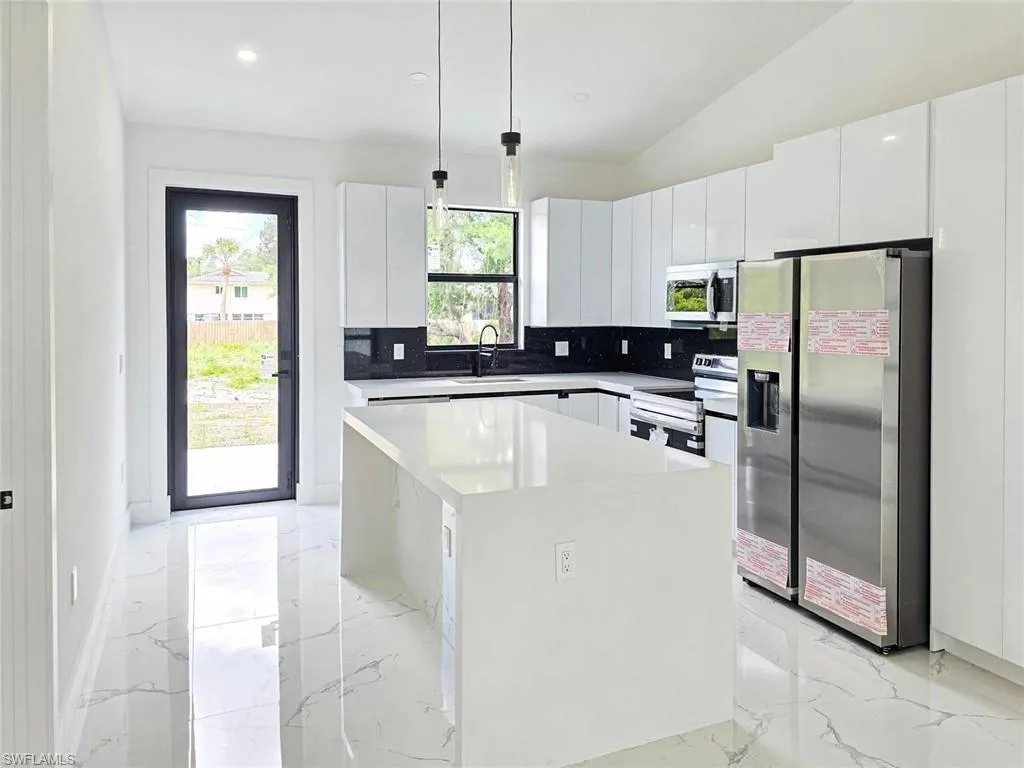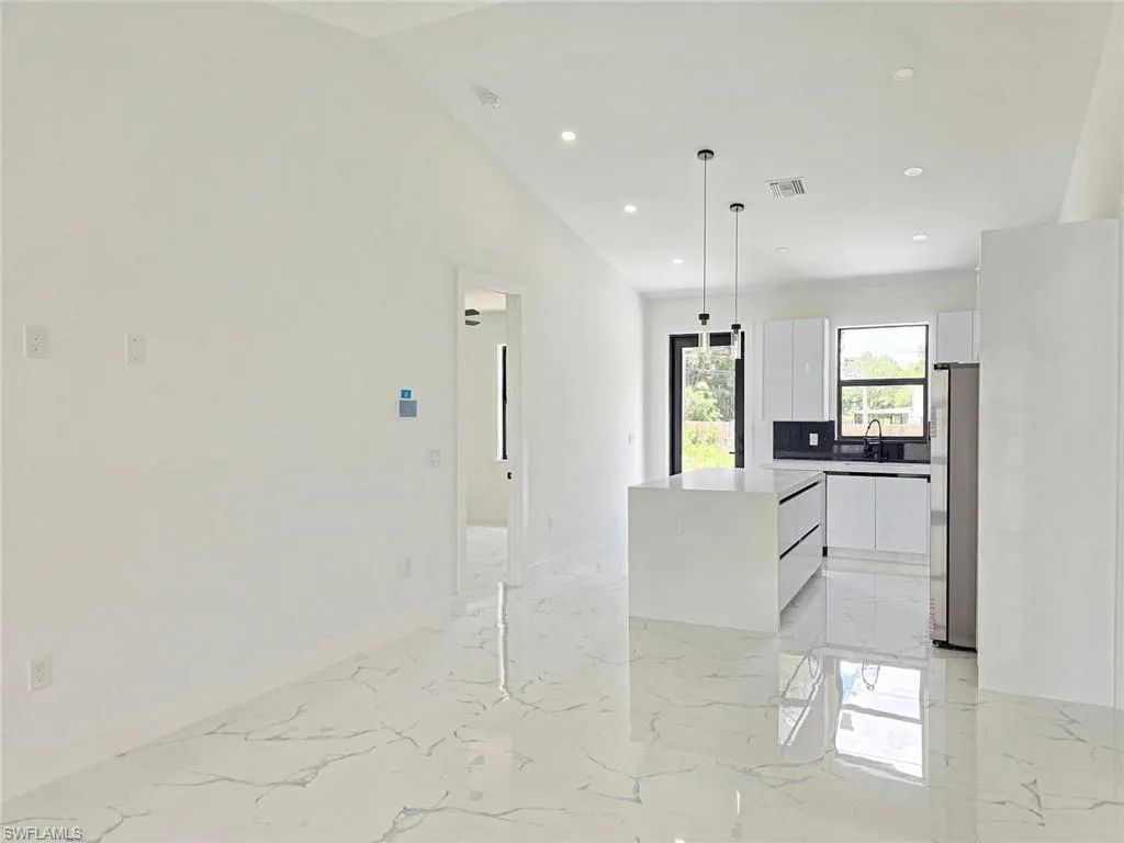 One or more photo(s) has been virtually staged, AI generated or rendered. Beautiful new construction located in an excellent half acre of Lehigh Acres, close to many stores, gas stations, restaurants and more. Open floor plan, metal impact double entry doors, as well as impact windows and back sliding door, sprinkles system, 10′ celling with crown molding, 8′ Interior doors and white porcelain tile flooring 32X32 throughout the entire home. Beautiful kitchen with white quartz countertop with an island, wooden 42″ cabinets with crown and light molding, stainless still appliances and kitchen hood. Also has walking closet in the master bath, double sink, shower panel tower system rain and waterfall massage jet sprayer. Both showers with glass doors and panels. A/C with returns in each room for better A/C circulation. Ceiling fans in each bedroom and the living room. Garage is paining with an impact lateral garage door. This home comes equipped with a complete Smart Home package, offering enhanced security, comfort, and seamless control throughout the property. The system includes:- HD IP Security Camera System for high-definition monitoring, – Ring Video Doorbell with real-time alerts, – Smart Thermostat for efficient climate control, – Amazon Hub with integrated display for centralized management, The smart ecosystem allows you to create custom routines such as: – Automatically displaying the doorbell camera feed on the screen when someone rings – Adjusting the air conditioning temperature automatically based on your preferences. Using Alexa voice commands, including: “Alexa, turn up the air conditioning”, “Alexa, show me the Front Door”. The system is also fully scalable, allowing you to add additional Alexa-compatible devices in the future—such as smart locks, garage door openers, smart lighting, and more. THIS HOME WILL GIVES YOU THE BEST OF BOTH WORLDS! PEACE AND TRANQUILITY YET NEARBY THE CITY! YOU DON’T WANT TO MISS THIS OPPORTUNITY!!. YOU CAN’T GO WRONG!! SCHEDULE A SHOWING TODAY!!.