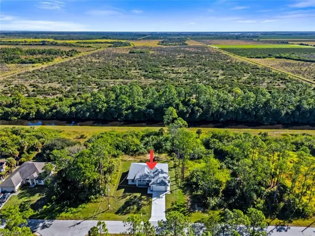 New construction 4 bed/3 bath with 2 Master Suites and a split floor plan. Home features impact windows, large porcelain tile throughout, and a bright open layout. Enjoy full backyard privacy with a wide freshwater canal perfect for fishing and peaceful orange groves directly across the water. Move-in ready with modern finishes and a serene natural setting.