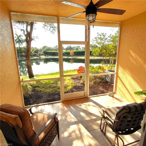 Outstanding Location within the Imperial Wilderness Condominium Association of Naples, FL— diagonal from the second pool & spa area and on the water! This beautifully maintained, true 2Br/2Ba home features LAND that YOU OWN and spectacular water views from the spacious living room and eat-in kitchen area.