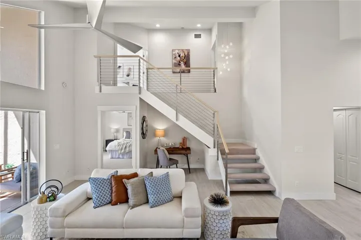 Discover this beautifully renovated & reimagined 3-bedroom, 2-bath condominium in Falling Waters featuring one of the largest saltwater pools in Naples. This modern end-unit residence includes a detached garage with custom cabinetry for additional storage and has been thoughtfully redesigned to balance functionality and elegance.