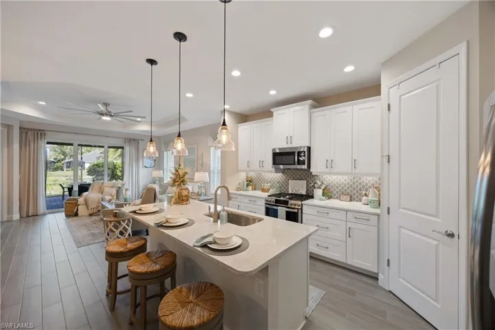 Hampton Lakes is a collection of new single-family homes for sale at the River Hall masterplan in Alva, FL. This gated community is designed to cater to active lifestyles, featuring an array of amenities including a fitness center, resort-style pool and tennis, pickle ball and bocce ball courts. Designed on a single story, this home is great for family life.