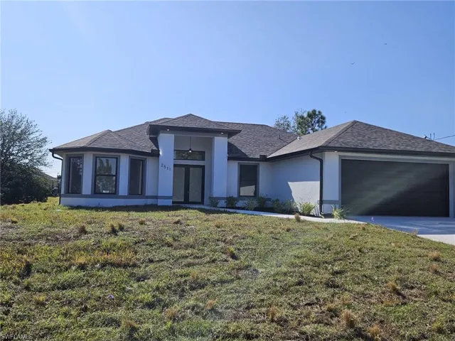 Welcome to this brand-new contemporary Florida home! Situated on a spacious lot in Lehigh Acres, this property offers the perfect combination of modern design and everyday comfort.
