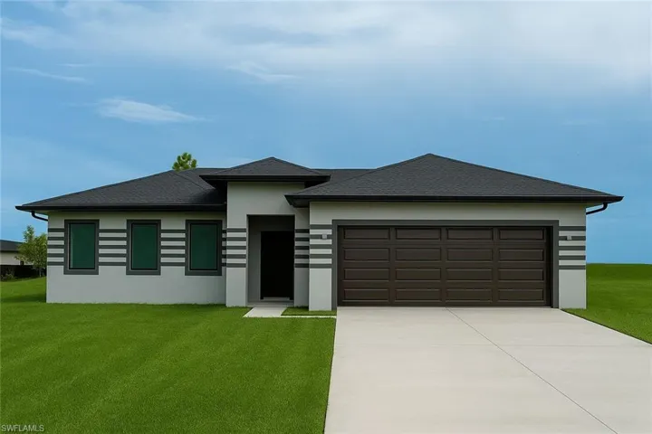 Discover this stunning, move-in-ready new construction home offering 1,904 sq ft of living area located in the fastest-growing area of Cape Coral. Featuring a sleek contemporary layout with 10-foot ceilings and elegant tile flooring throughout, this residence boasts 4 spacious bedrooms and 3 stylish bathrooms.