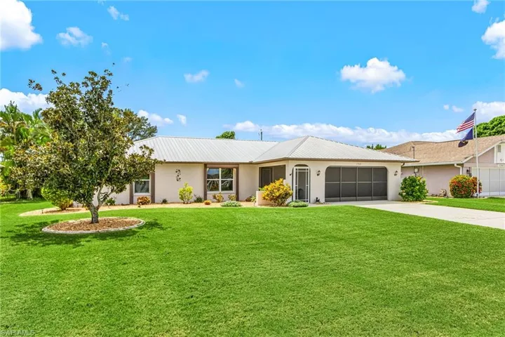 Pride of ownership shines throughout this rare SE Cape Coral home! immaculate inside and out, with every detail carefully maintained. Built in 2001, this residence offers peace of mind with a 2018 metal roof, accordion storm shutters, city water & sewer in and paid and no flood insurance required, (a huge savings for the new owner).