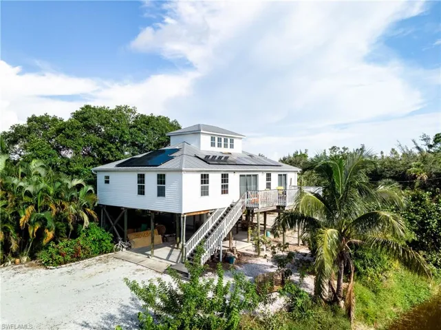 Spectacular, Unique Island Setting...North Pine Island, THREE ACRES, Natural Pond, Property wraps around the LLake & pond for privacy with large oak Hammock,,, Old Florida Island Style 2 story home, no flooding ...Ground floor has shop and parking..